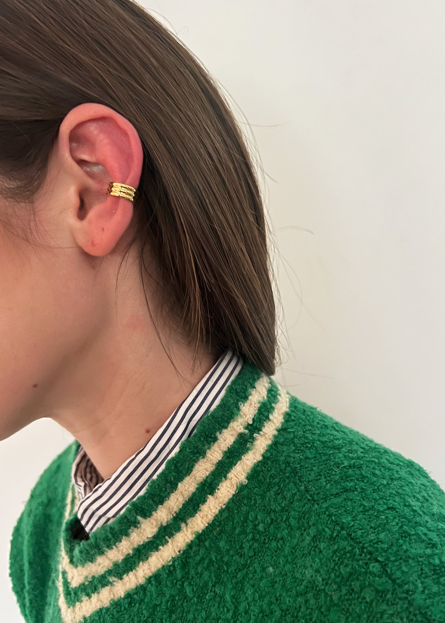 Put around the edge of the ear at the narrowest part and then slide to your chosen place and pinch to fit if required.