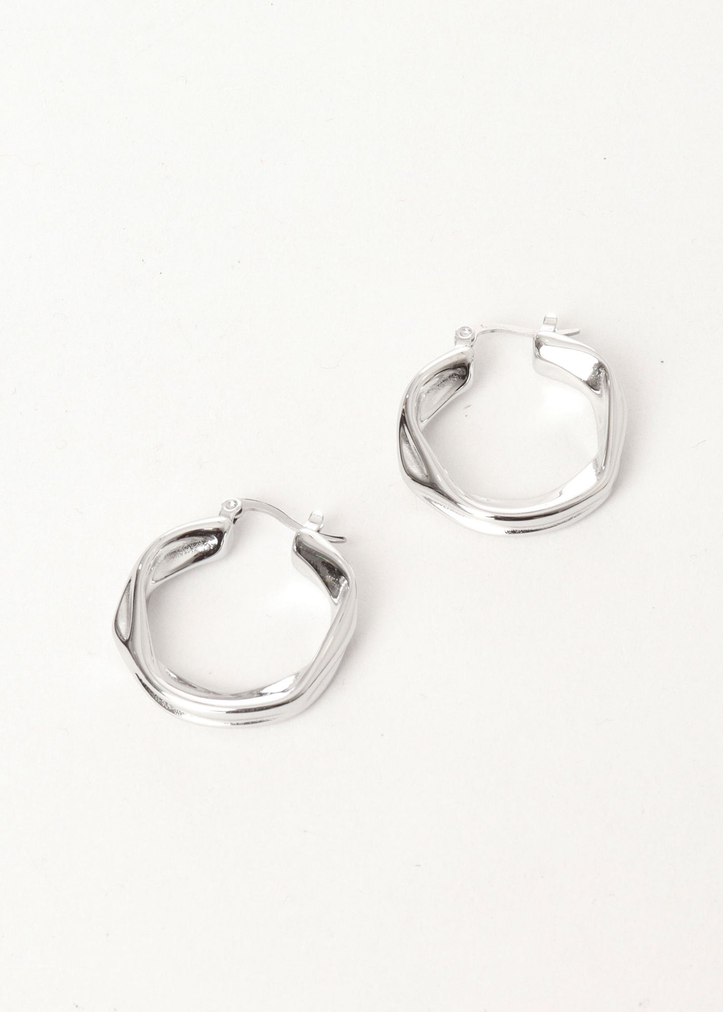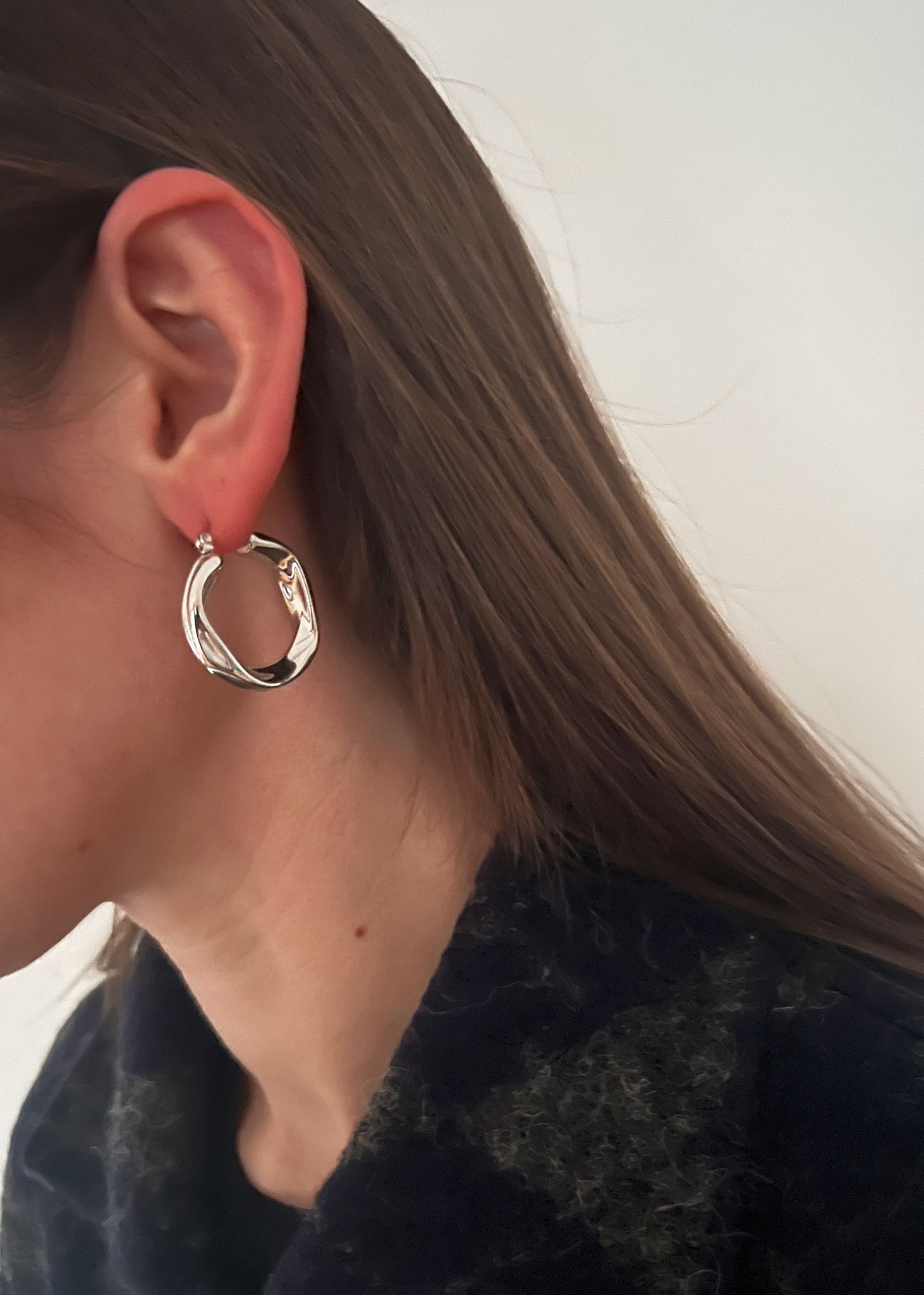 Textured to perfection the Ren hoop is a great addition to your eardrobe. With a circle design and a hinge clasp fastening they add the perfect statement to any outfit. Available in both silver and gold.